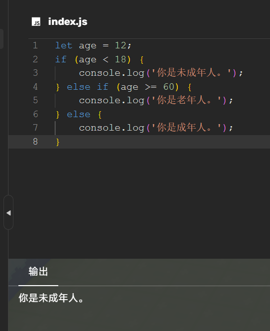 当年龄大于等于 60 岁,控制台输出:你是老年人。