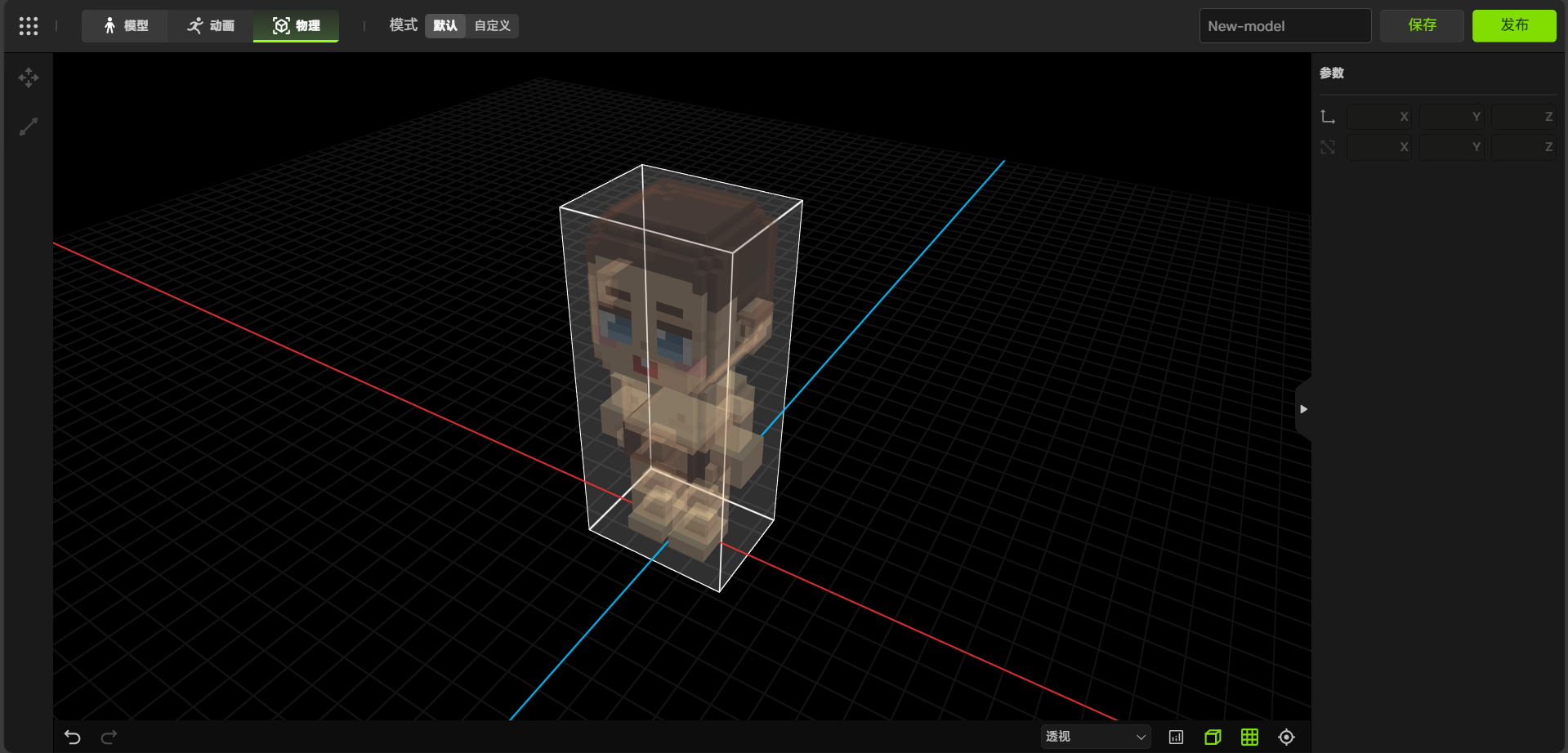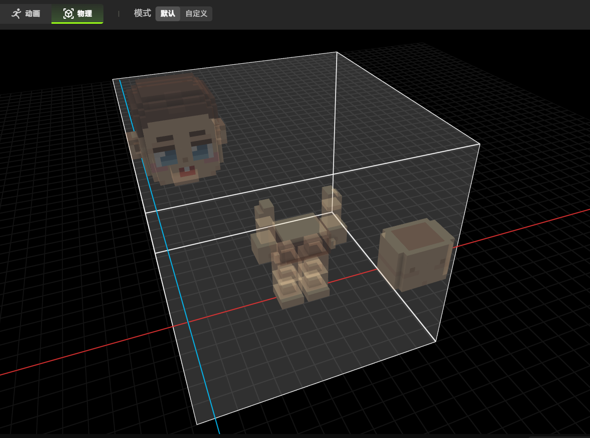 自定义情况下,模型物理碰撞框则固定为用户自定义的四边体,与初始模型无关
