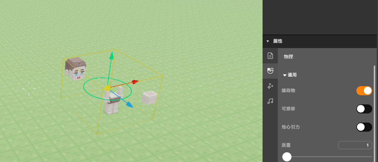 - 在运行过程中,物理框、实体锚点、外观框将近似打组重新生成一个完整物体,在实体发生位移、旋转、缩放时都将以整体进行变换