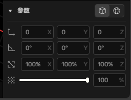 属性面板可调整部件的位置和方向(局部/世界双坐标设置),同时也可设置透明
