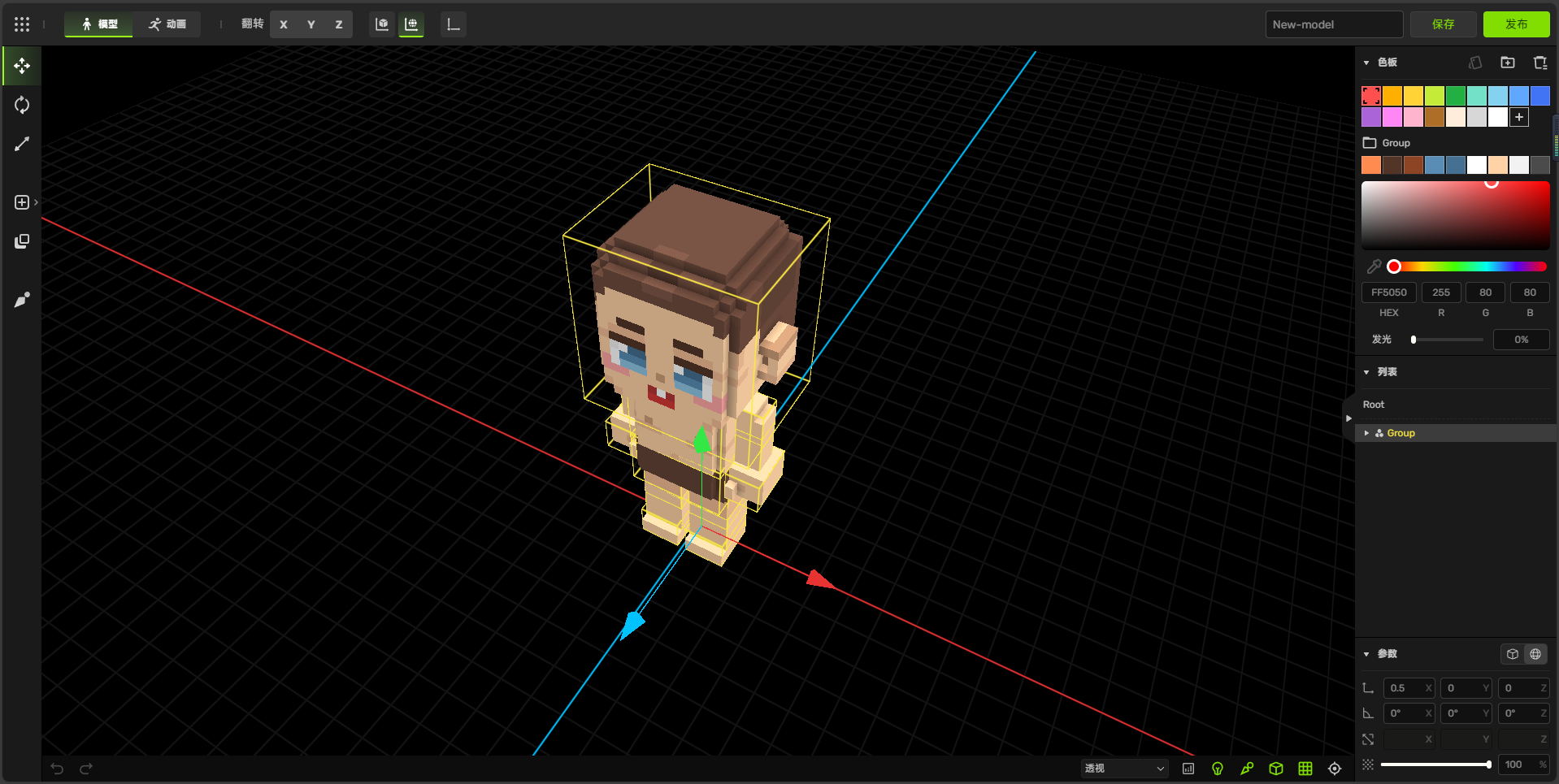 选择并确认后,系统将自动带你进入该模型的创作端,也就是功能强大的Voxa模型编辑器。在这里,你可以自由发挥,利用丰富的编辑工具和素材,打造属于你自己的独特游戏世界。
